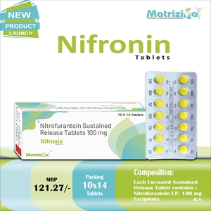 Nifronin Tab | 10x14 | Nitrofurantoin I.P. 100mg (SR) | Details |
