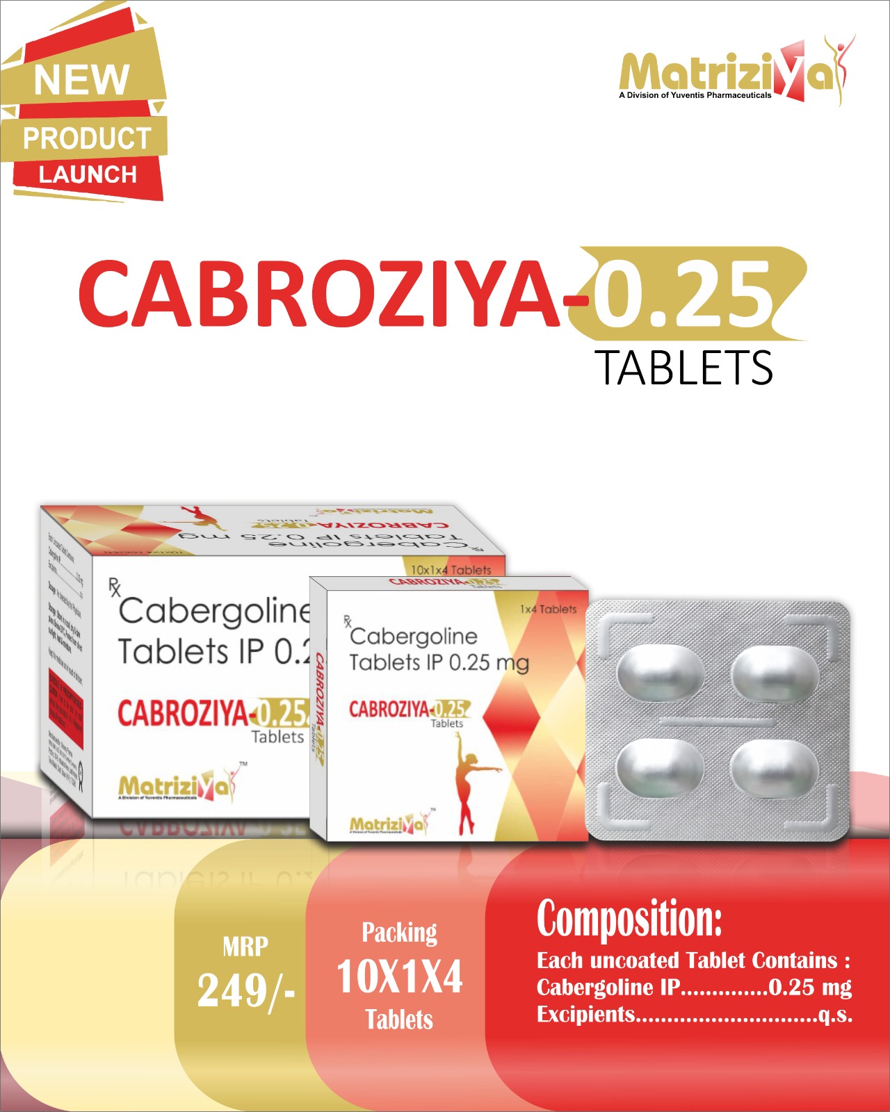 Cabroziya 0.25 | 10*1*4 | Cabergoline 0.25mg Tablets | Details |