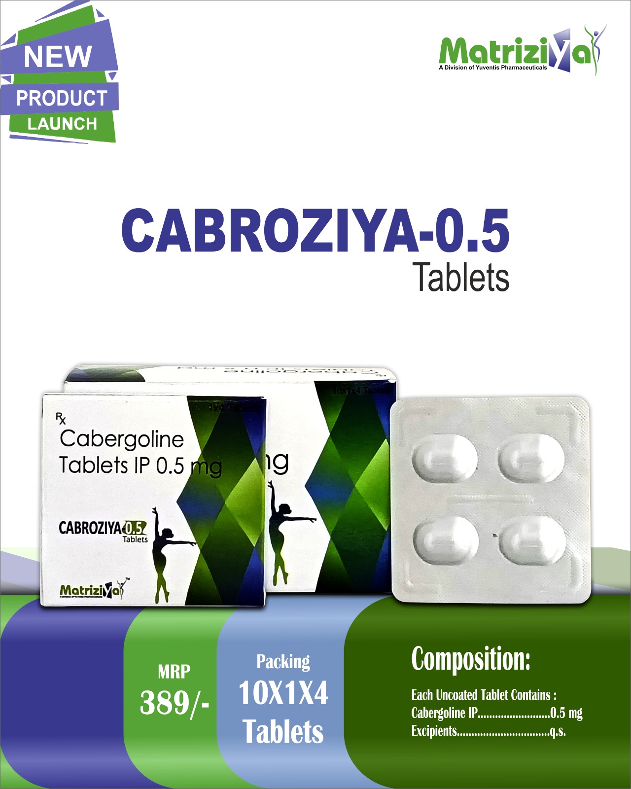 Cabroziya 0.5 | 10*1*4 | Cabergoline 0.5mg Tablets | Details |