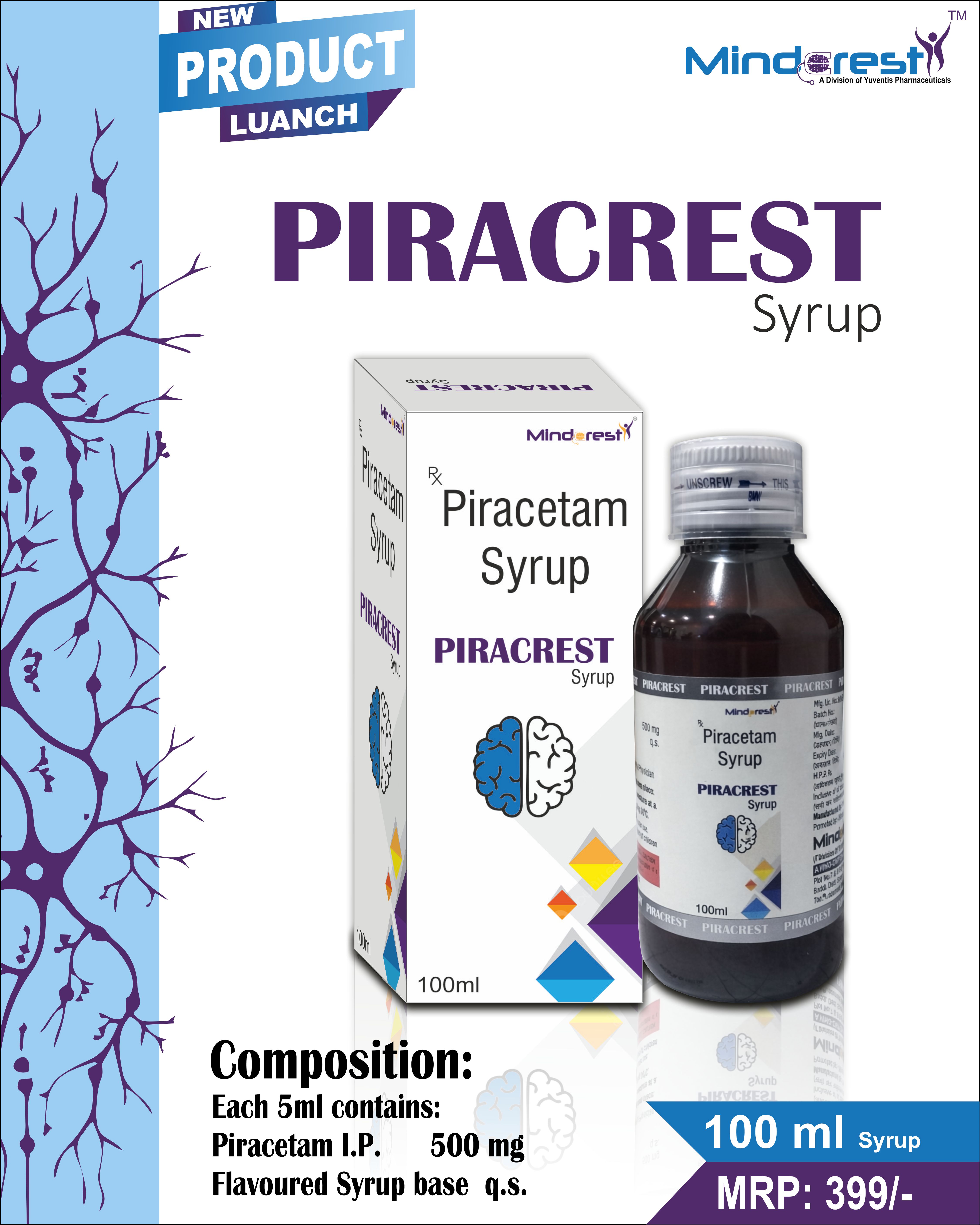 PIRACREST Syrup | 100ml/carton | Piracetam I.P. 500mg Syrup | Details |