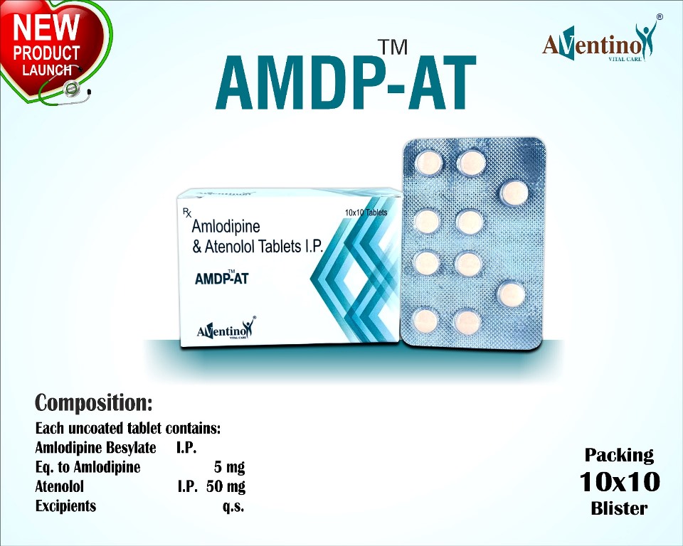 AMDP-AT | 10*10 | Each uncoated tablet contains: Amlodipine Besylate I.P.: Equivalent to Amlodipine 5 mg Atenolol I.P.: 50 mg Excipients: q.s. | Details |