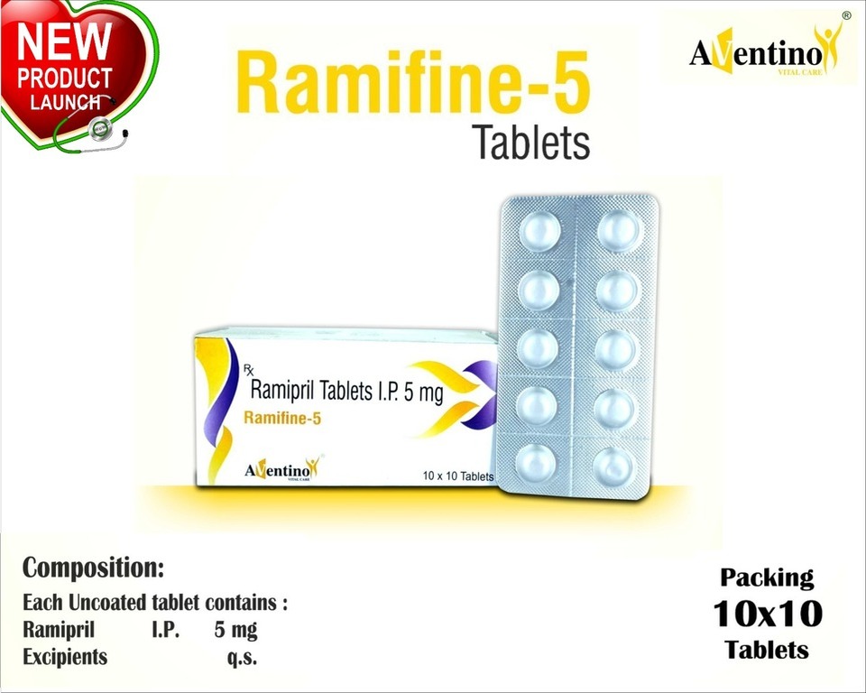 Ramifine-5 Tablets | 10*10 | Ramipril Tablets I.P. 5 mg Each uncoated tablet contains: Ramipril I.P.: 5 mg Excipients: q.s. | Details |