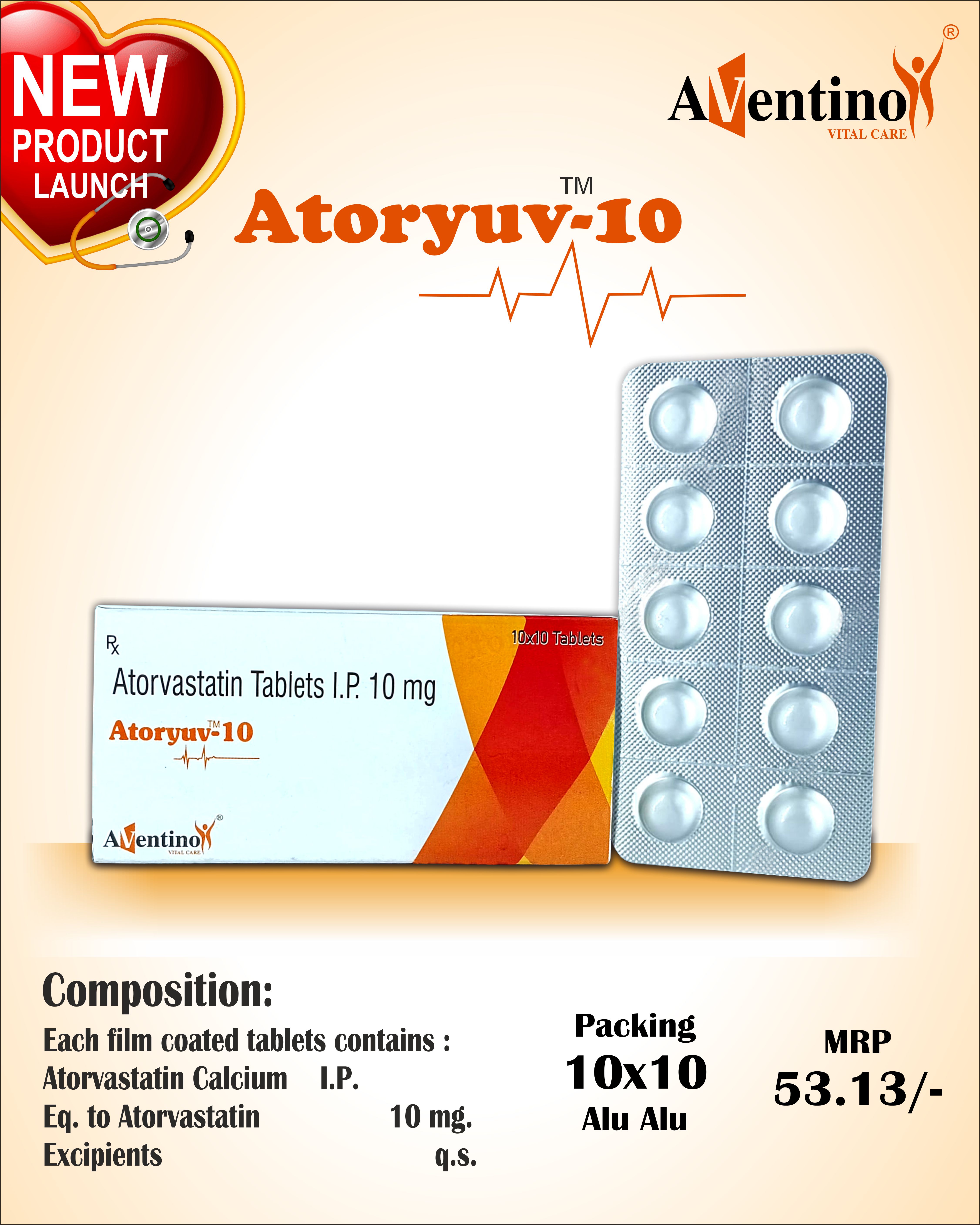 Atoryuv 10 | 10*10 | Atorvastatin Calcium I.P. 10mg Tablets | Details |