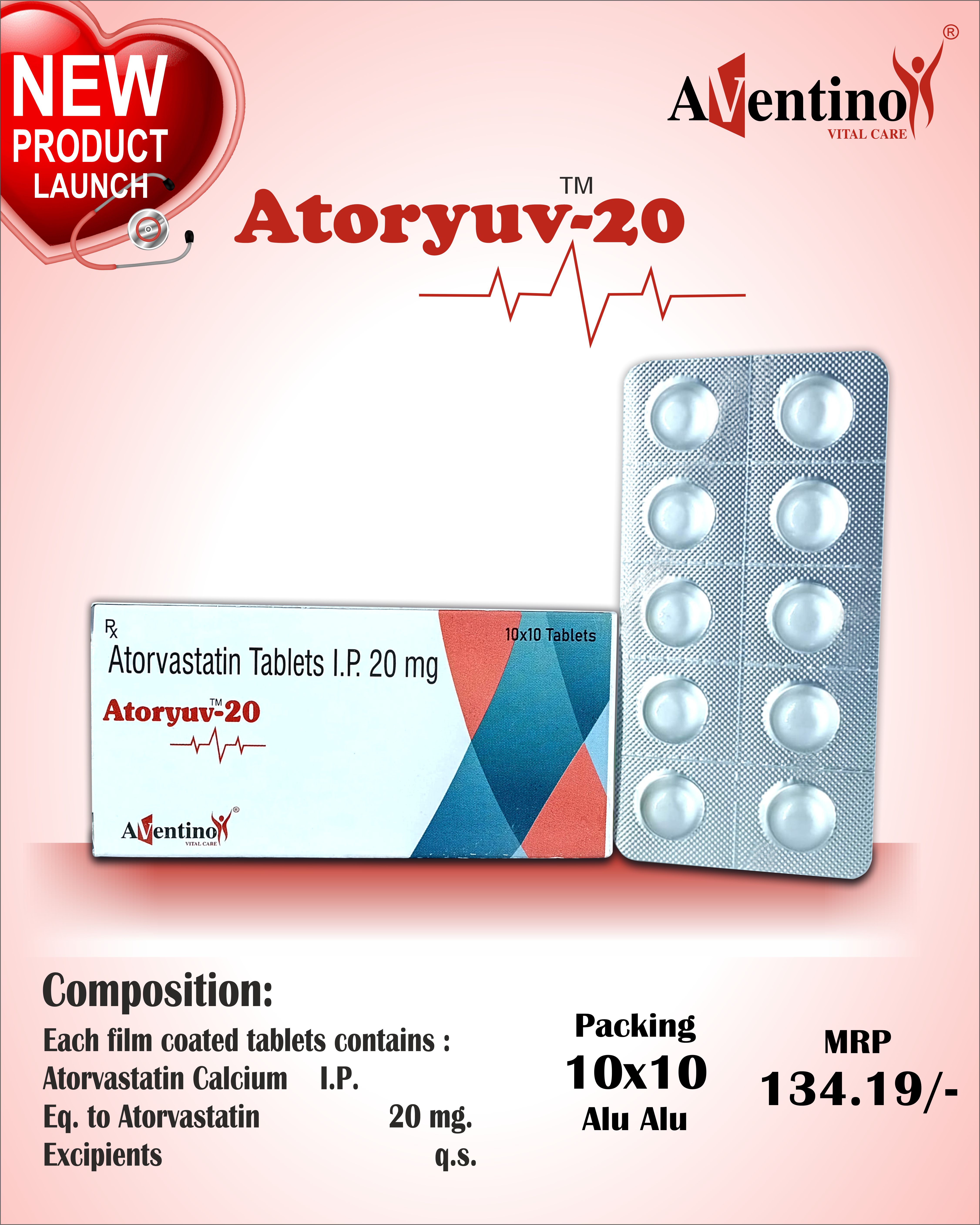Atoryuv 20 | 10*10 | Atorvastatin Calcium I.P. 20mg Tablets | Details |