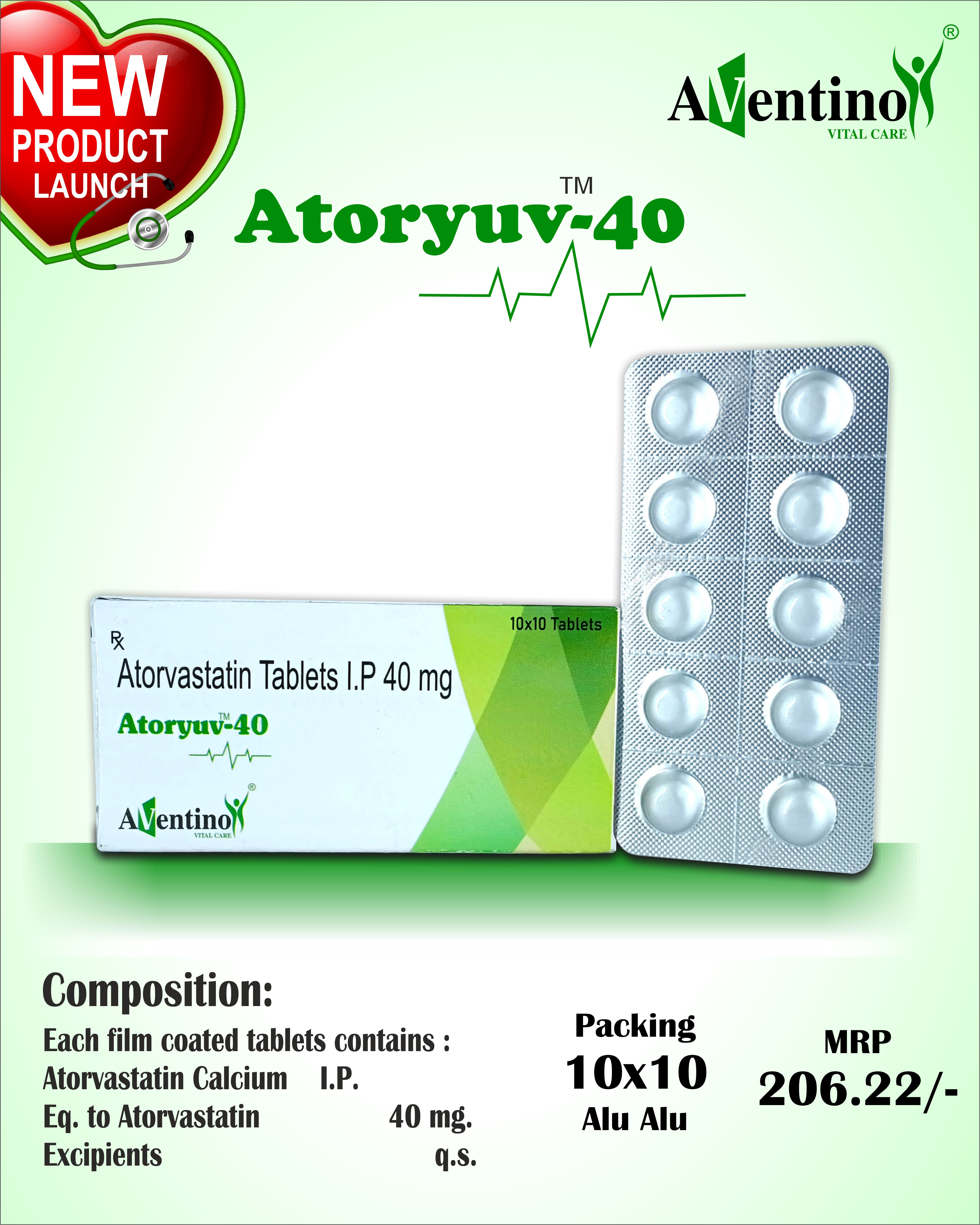 Atoryuv 40 | 10*10 | Atorvastatin Calcium I.P. 40mg Tablets | Details |