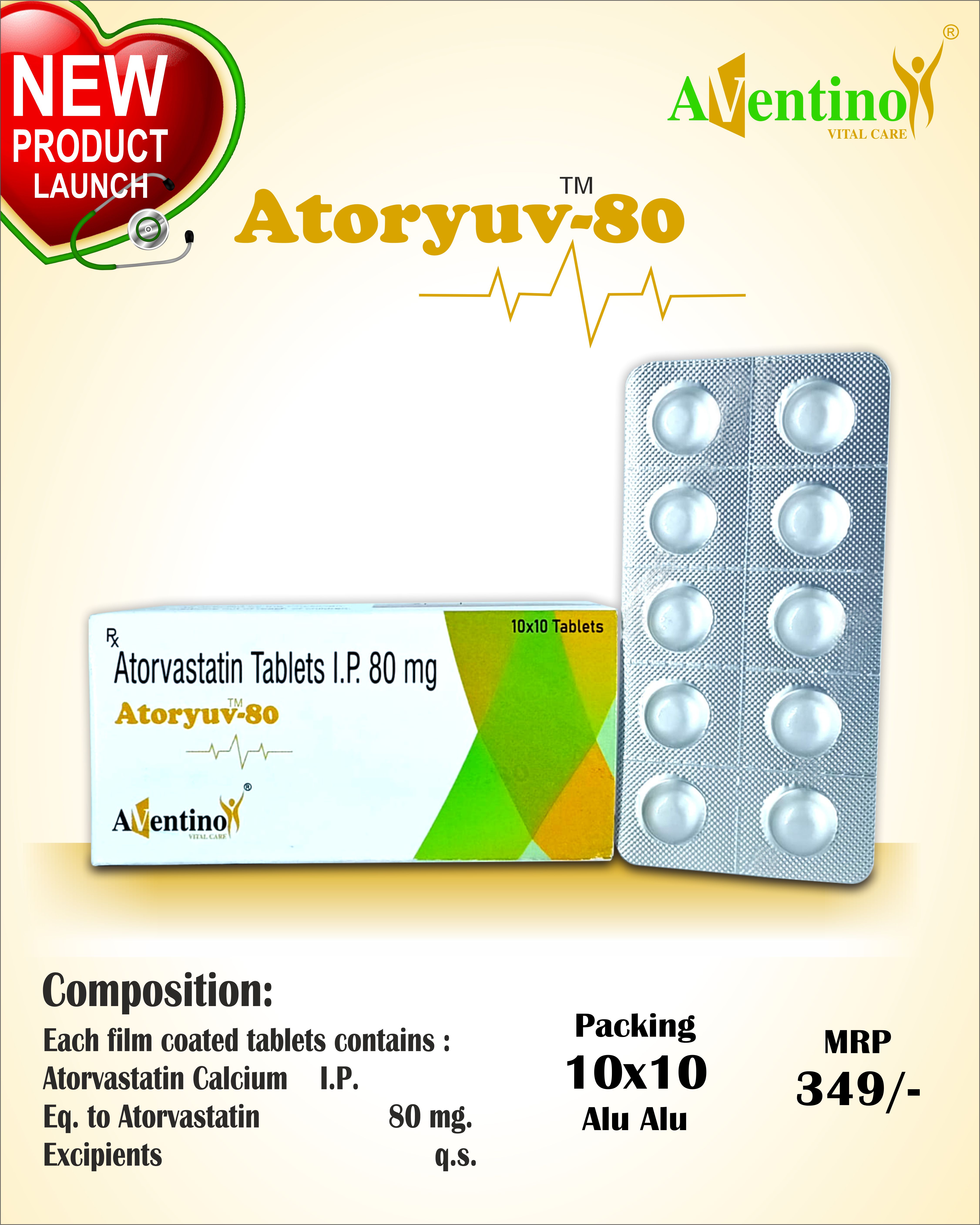 Atoryuv 80 | 10*10 | Atorvastatin Calcium I.P. 80mg Tablets | Details |