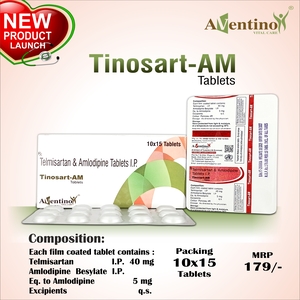 Tinosart AM | 10*15 | Telmisartan I.P. 40mg + Amlodipine I.P. 5mg Tablets | Details |