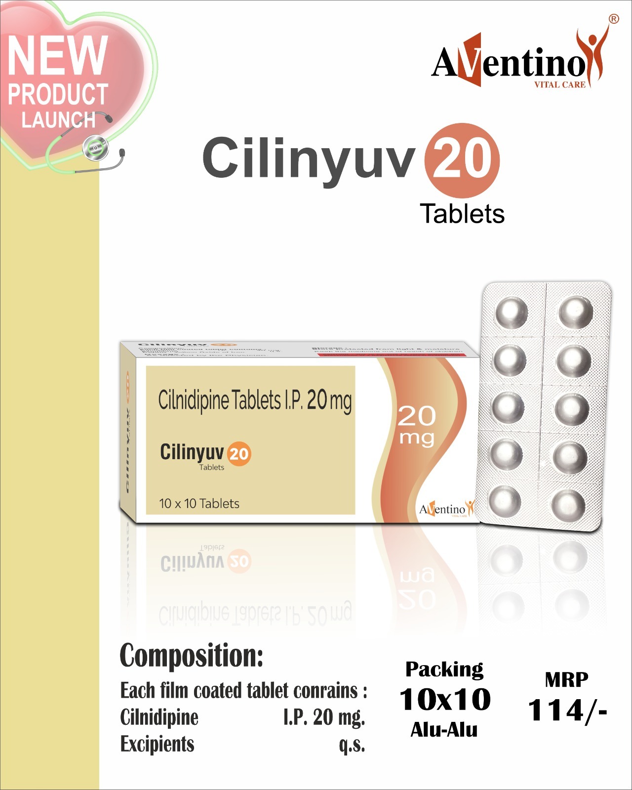 Cilinyuv 20 | 10*10 | Cilnidipine 20mg Tablets | Details |
