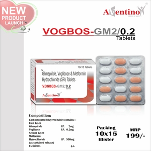 VOGBOS GM2/0.2 | 10*15 | Glimepiride I.P. 2mg + Voglibose I.P. 0.2mg + Metformin HCL I.P. 500mg Bi-Layered Tablets | Details |
