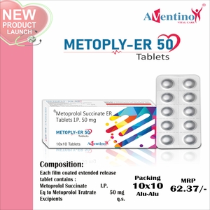 Metoply ER 50 | 10*10 | Metoprolol Succinate I.P. 50mg (E.R.) Tablets | Details |