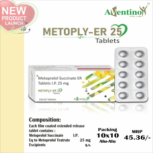 Metoply ER 25 | 10*10 | Metoprolol Succinate I.P. 25mg (E.R.) Tablets | Details |