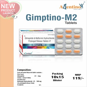Gimptino M2 | 10*15 | Glimepiride (2mg) + Metformin (500mg) SR Bilayered Smart Tablet | Details |