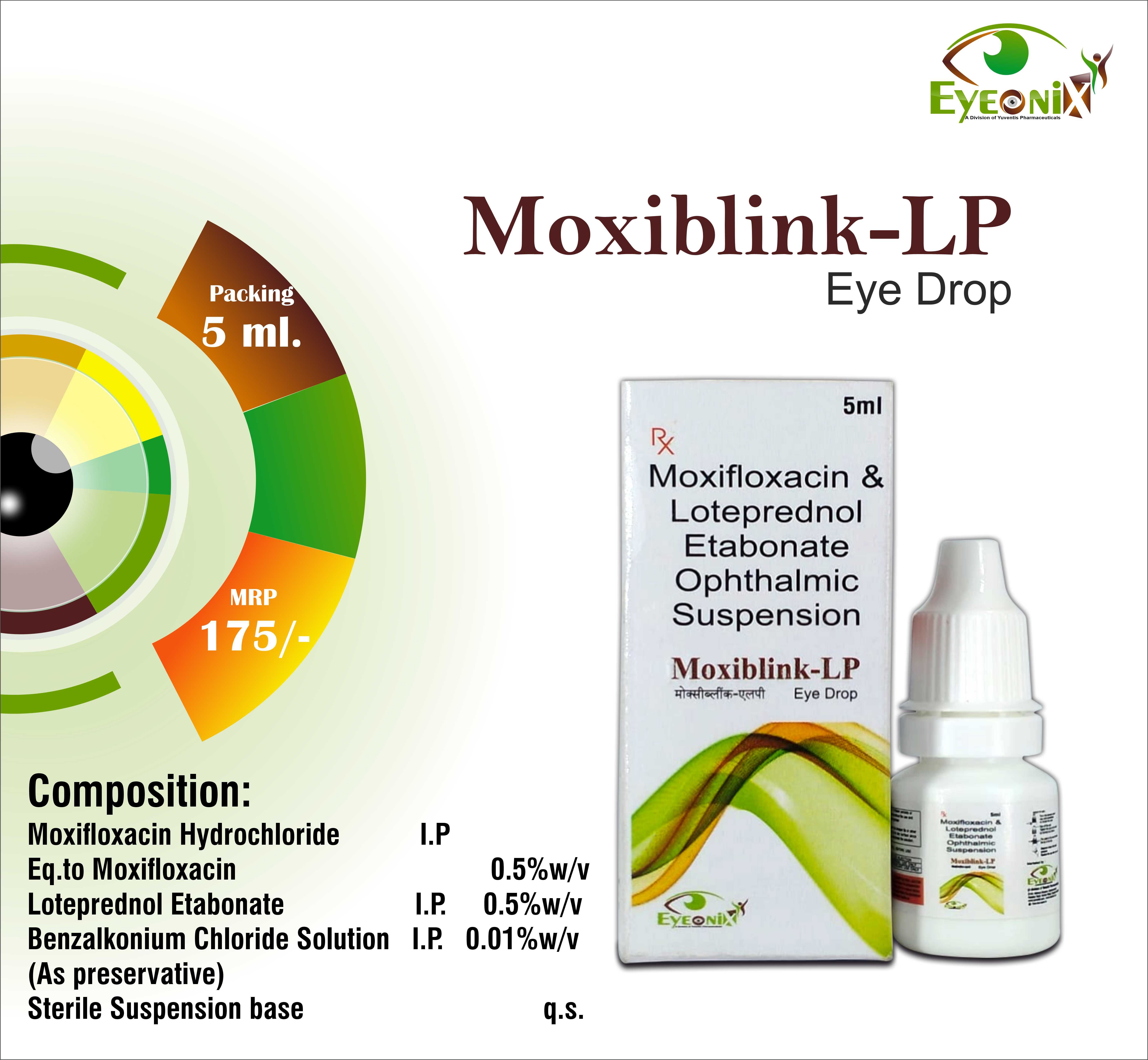 MoxiBlink LP | Eye Drop - 5ml | Moxifloxacin HCL I.P. 0.5% w/v + Loteprednol 0.5% w/v Eye Drop | Details |