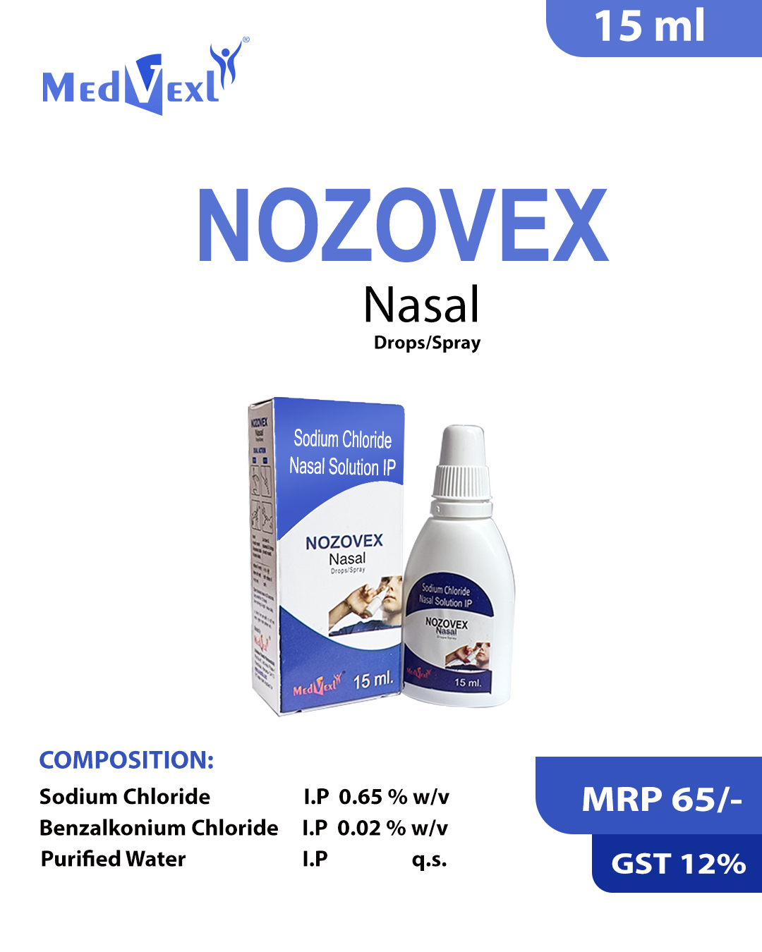 NOZOVEX | 15 ml | Sodium Chloride ip 0.65w/v+Benzachloride solution ip 0.02w/v | Details |