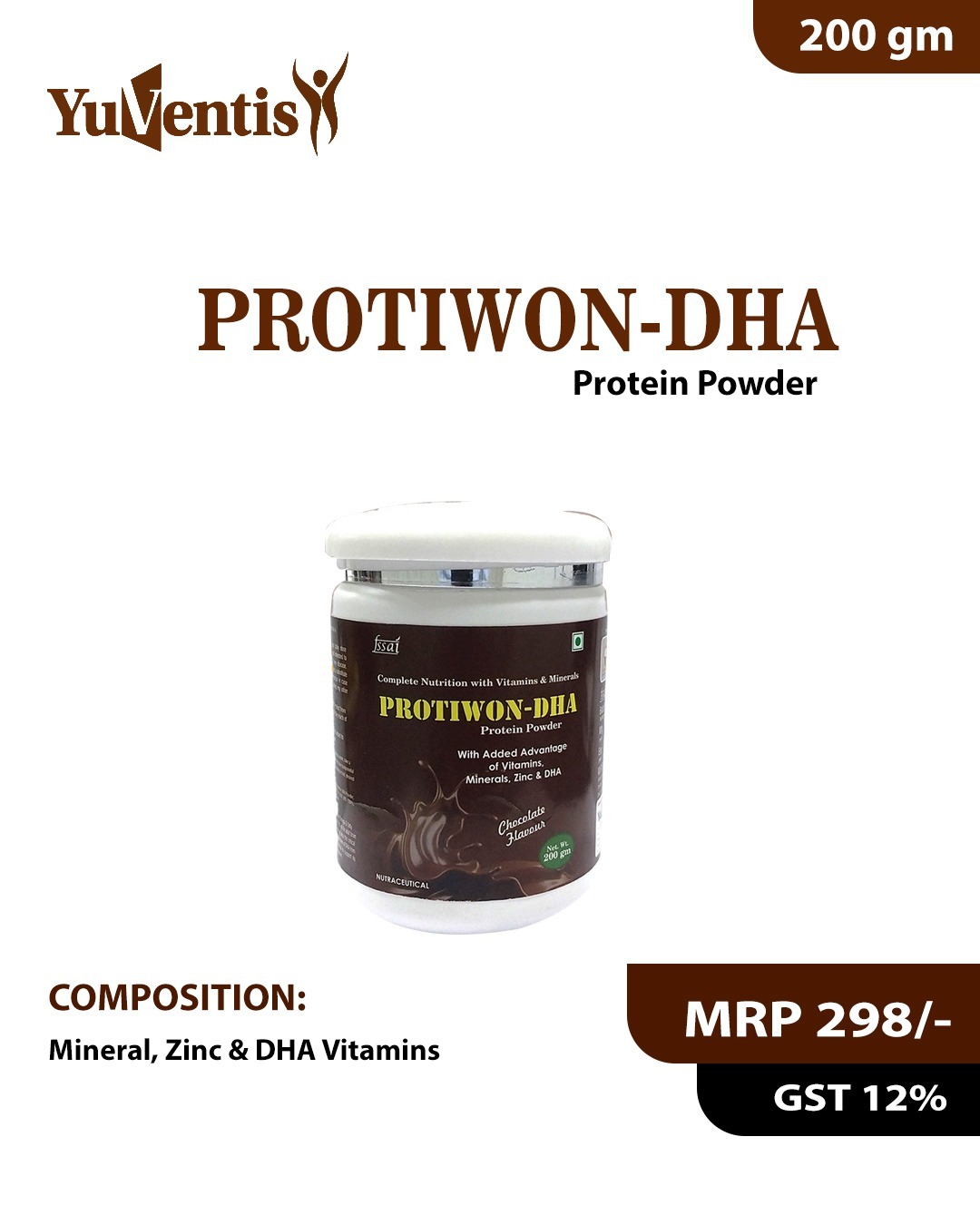 PROTIWON - DHA | 200 GM | Protein Powder with DHA (Chocolate Flavour) | Details |