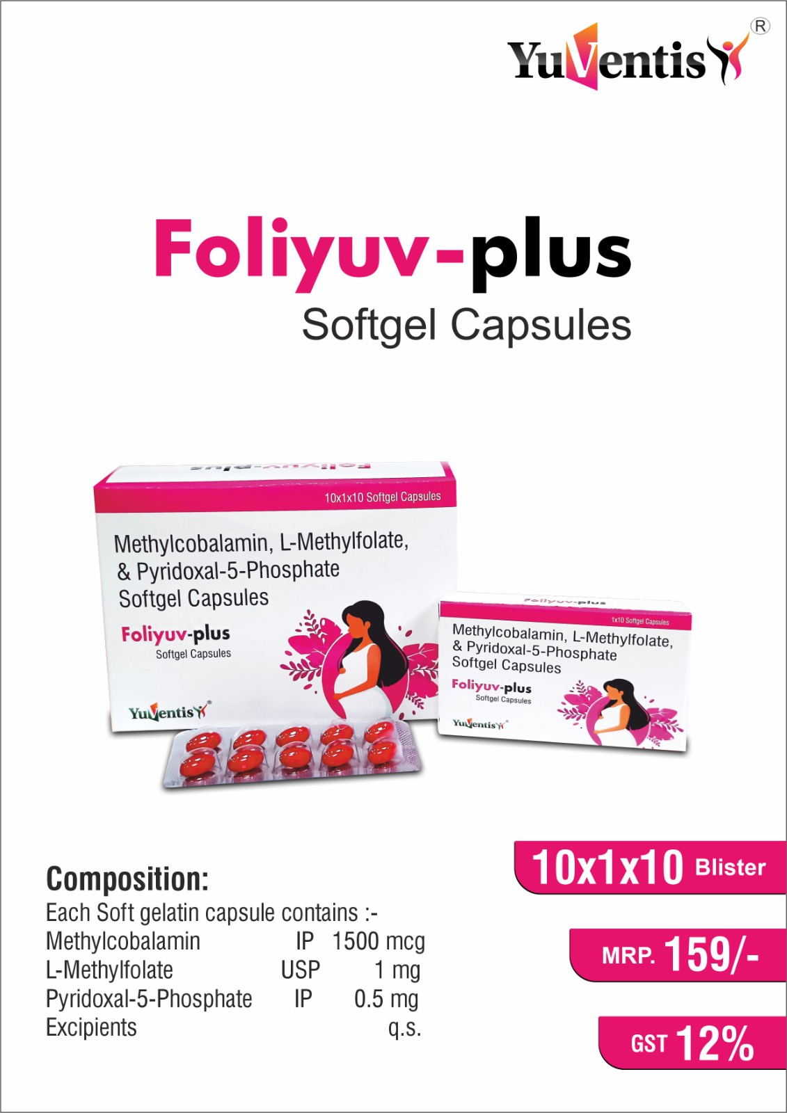 FOLIYUV PLUS Softgel | 10x10x10 | L-Methyl Folate (1mg) + Methylcobalamin (1500mcg) + Pyridoxal-5-phosphate (0.5mg | Details |