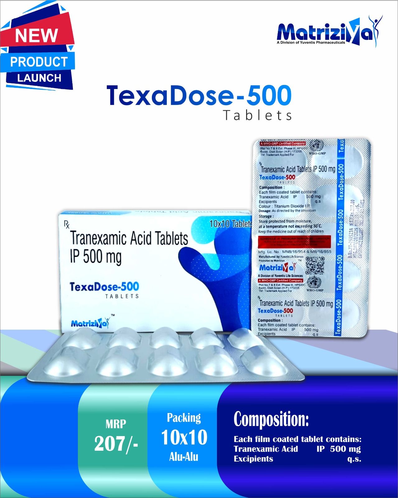 TEXADOSE-500 | 10*10 | Tranexamic Acid 500mg | Details |