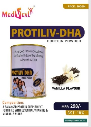 PROTILIV-DHA ( Vanilla Flavour) | 200 GM | Protein Powder with DHA (VANILLA Flavour) | Details |