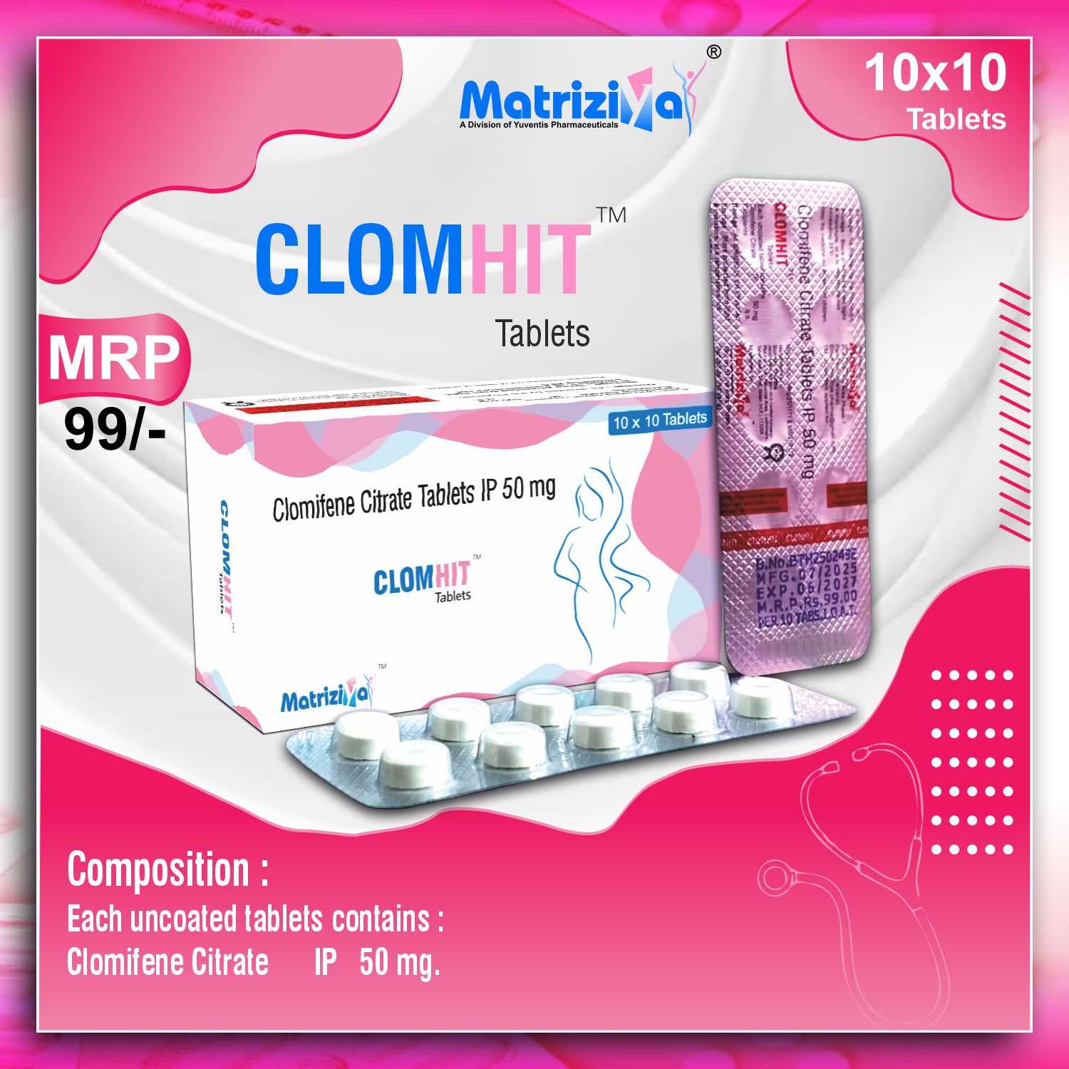 CLOMHIT Tablets | 10*10 | Clomifene Citrate 50mg Tablets | Details |