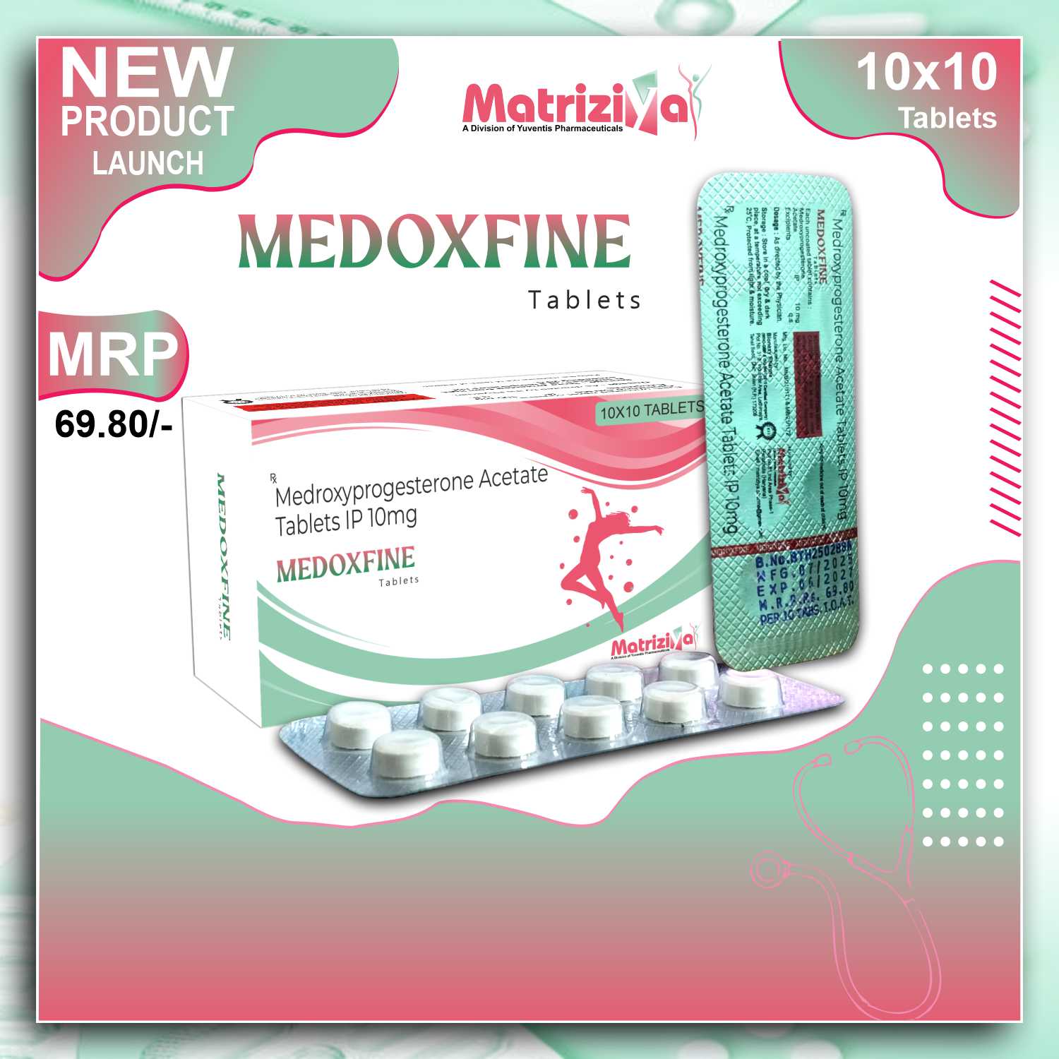 MEDOXFINE Tab | 10*10 | Medroxyprogesterone Acetate I.P. 10mg Tablets | Details |