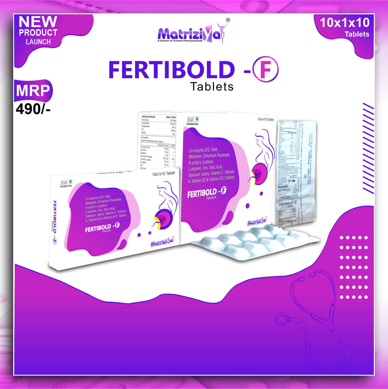 FERTIBOLD F Tab | 10*1*10 | Co-enzyme Q10 100mg + DHA 10% 90mg + Melatonin 2mg + Chromium Picolinate 200mcg + N-acetyl L-cysteine 50mg + Larginine 25mg + Zinc 15mg + Folic Acid 176.46mcg + Selenium 40mcg + Iodine 50mcg + Vitamin C 40mg + Vitamin A 1000 IU + Vitamin B12 400 IU | Details |