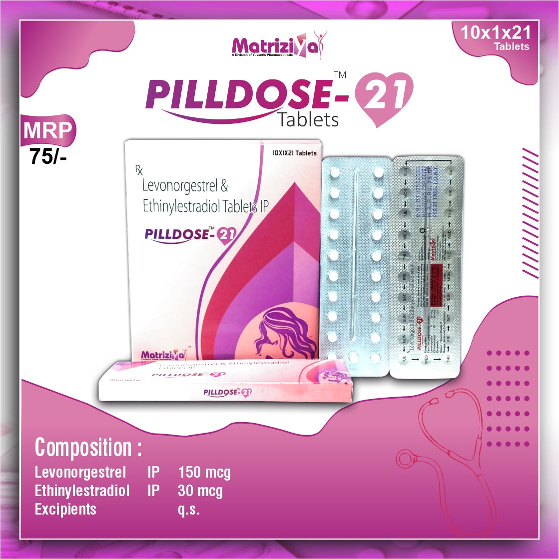 PILLDOSE 21 | 10x1x21 Blister | Levonorgestrel 0.15mg +Ethinylestradiol 0.03mg Tablets | Details |