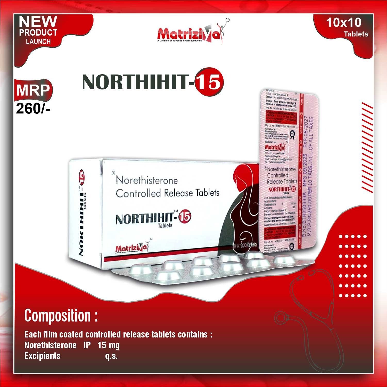 NORTHIHIT-15 | 10*10 | Norethisterone I.P. 15mg (C.R.) | Details |