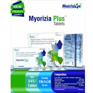Myorizia Plus | 10*1*10 | MYO-INOSITOL,D-CHIRO-INOSITOL, LMETHYLFOLATE, CHROMIUM PICOLINATE, VITAMIN D3 & ACETYLCYSTEINE TAB | Details |