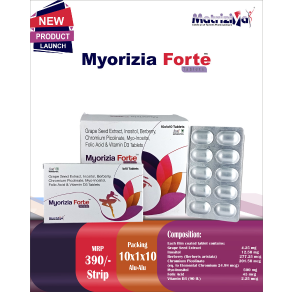 Myorizia Forte | 10*1*10 | Grape Seed Extract 4.25 + Inositol 12.50mg + Berberine HCL 277.25mcg + Chromium Picolinate 201.50mcg + Myo- Inositol 500mg + Folic Acid 45mcg + Vitamin D3 90 IU | Details |
