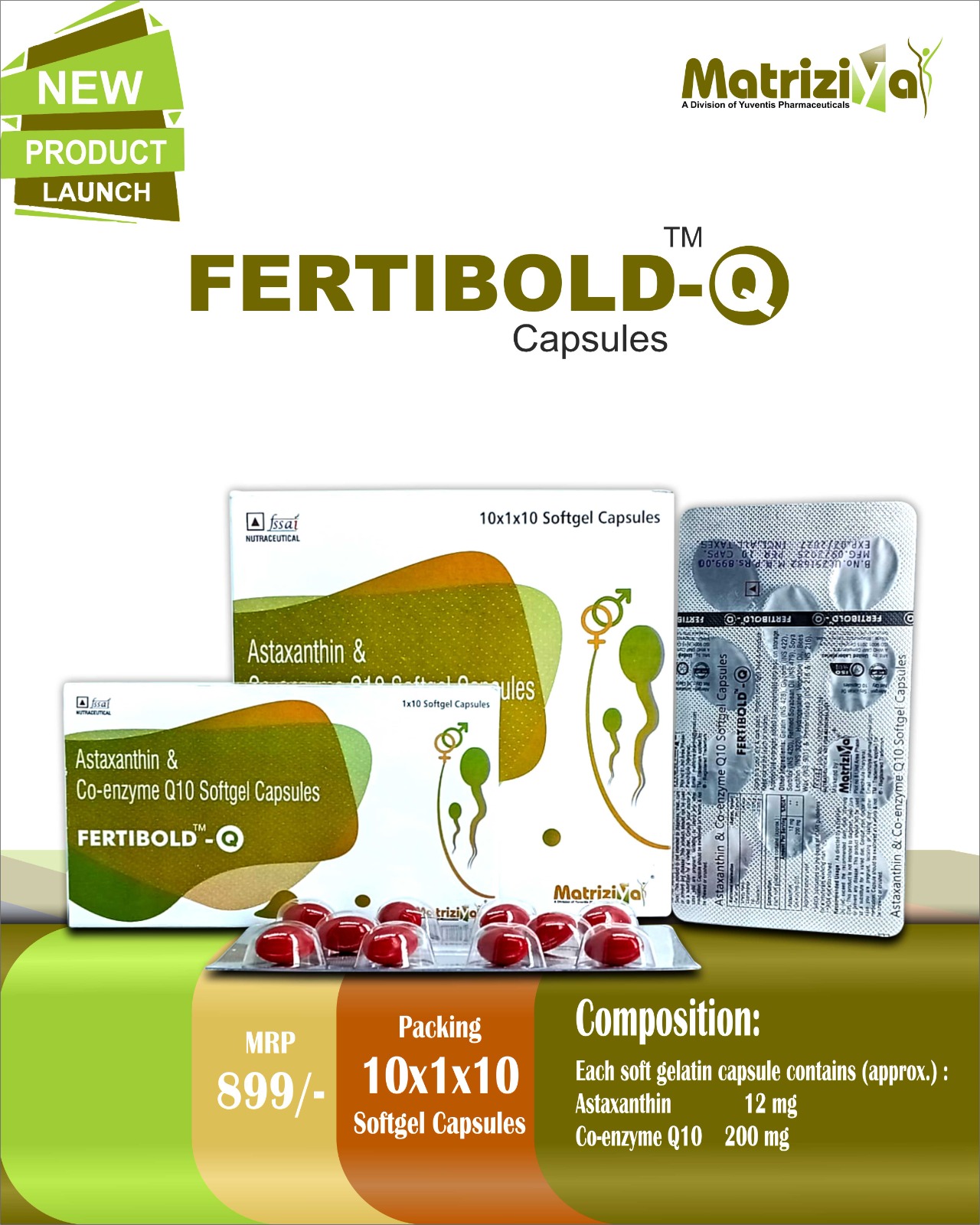 FERTIBOLD Q-LC | 10*1*10 | Astaxanthin 8mg, Coenyme Q10 10 mg, L-Carnitine L- Tartrate 500mg ,Vitamin k27 50 mcg, Magnesium sulphate 50 mg and Zinc sulphate 7.5 mg | Details |