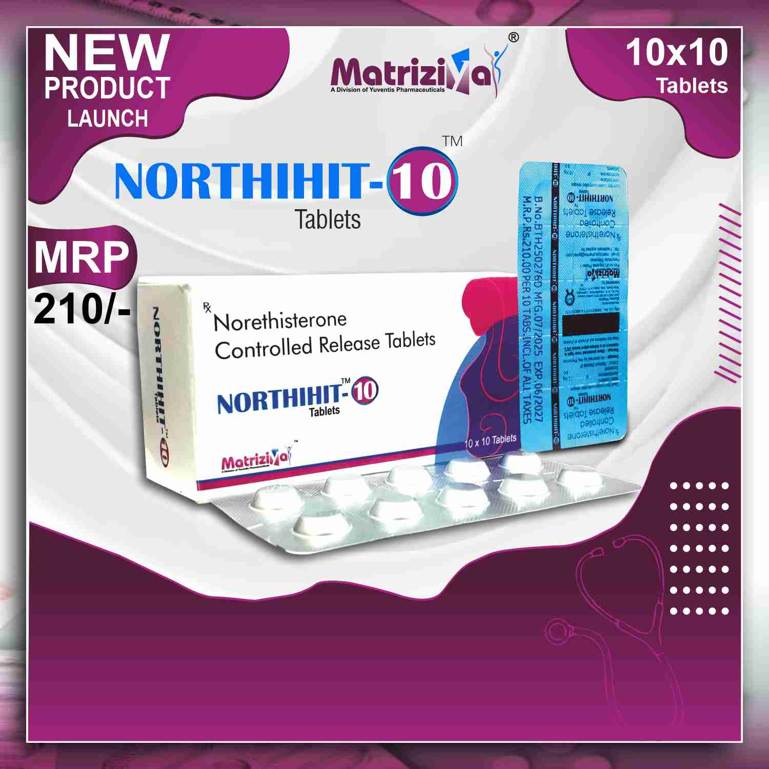 NORTHIHIT -10 Tab | 10*10 | Norethisterone I.P. 10mg (C.R.) | Details |