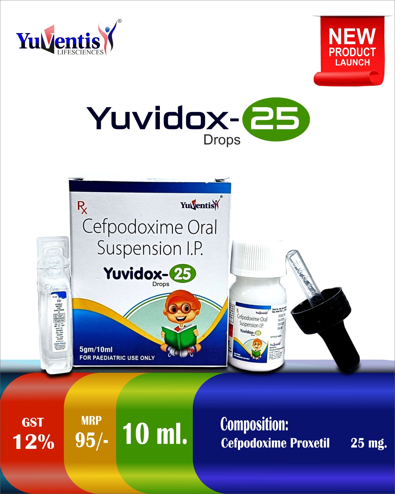 YUVIDOX-25 DROP | 10 ml | Cefpodoxime Oral Suspension I.P. 25 mg Drop | Details |