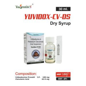 YUVIDOX -CV DS ,GLASS BOTT. | 30 ml | Cefpodoxime Proxetil I.P. 100 mg +Clavulanic Acid 62.50 mg (Dry Syrup) | Details |