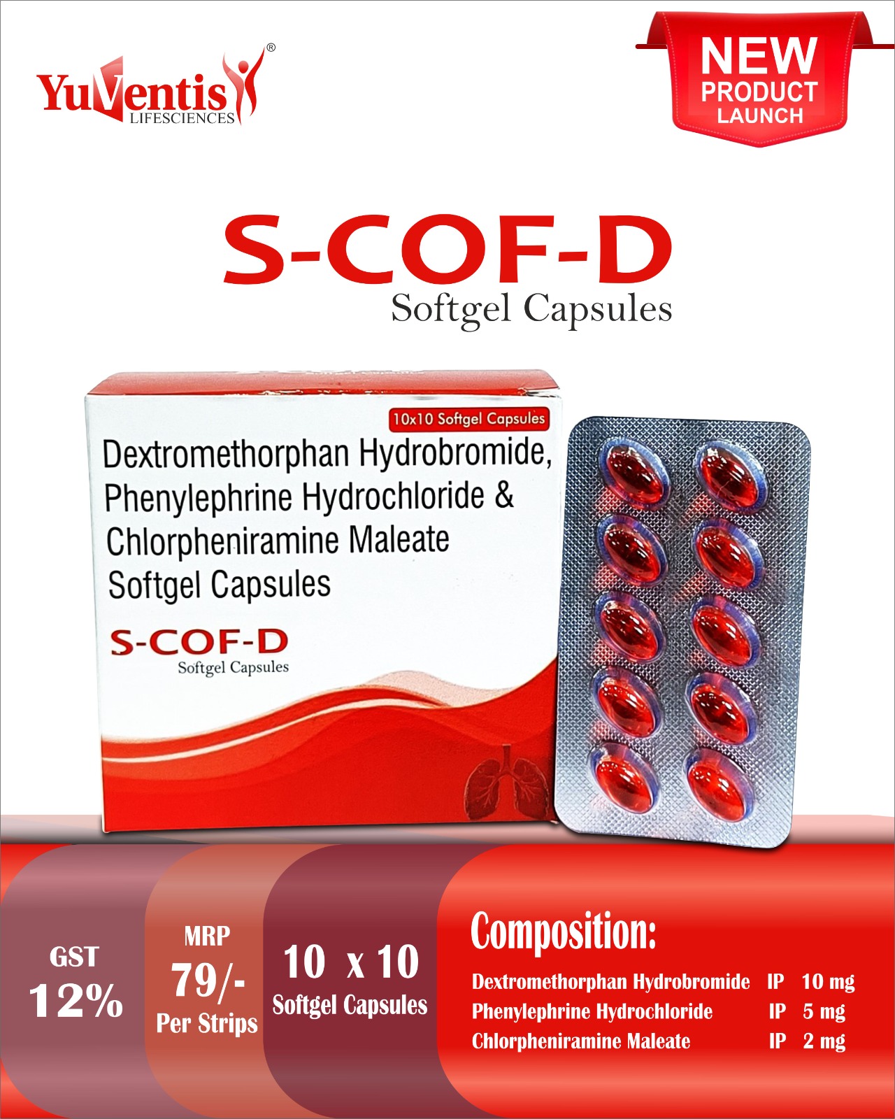 Dextromethorphan Hydrobromide IP 10 mg, Phenylephrine Hydrochloride IP 5 mg , Chlorpheniramine Maleate IP 2 mg Softgel Cap |